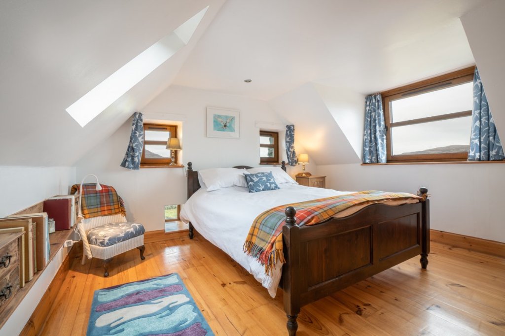 Torr Na Locha sits in the middle of Croft 24 on Ardtun on the Ross of Mull Near Bunessan. It sits opposite Berg with its waterfalls that blow upwards for at least half the year! It looks straight down Loch Scridain towards Pennyghael and Ben More with stunning views across to Staffa and the Treshnish Isles out to open sea.